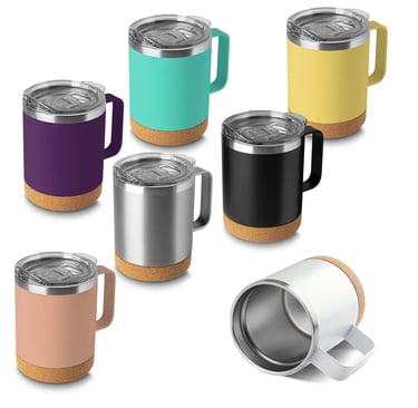 Caneca térmica aço inox 350ml. Parede dupla isolada à vácuo, base em cortiça.