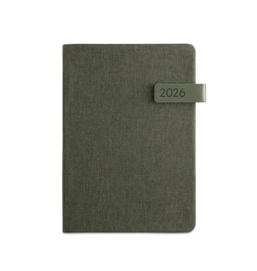 Agenda A5 PET reciclado. Plano diário. . 148 x 210 mm |Fornecida com bolsa de non-woven.