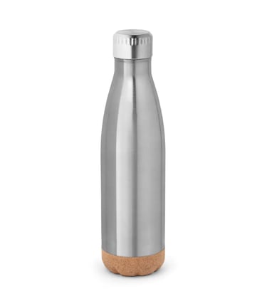 Garrafa aço inox de parede dupla térmica, base em cortiça 560 mL. Mantém as bebidas quentes por 8h e frias por 24h. ø71 x 258 mm