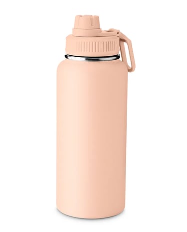 Garrafa térmica aço inox com parede dupla isolada a vácuo 960ml. Alça formato mosquetão. 25,2xø9cm