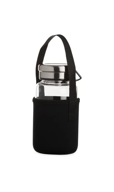 Garrafa vidro borossilicato 650ml, peneira infusora e capa de neoprene. 17,1x8,6x26,9 cm